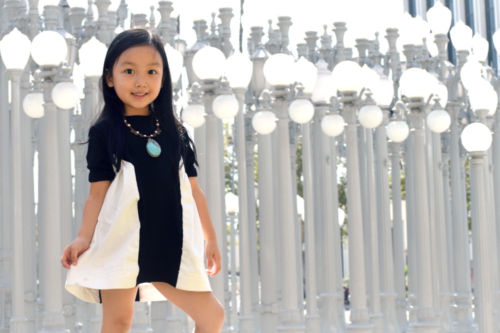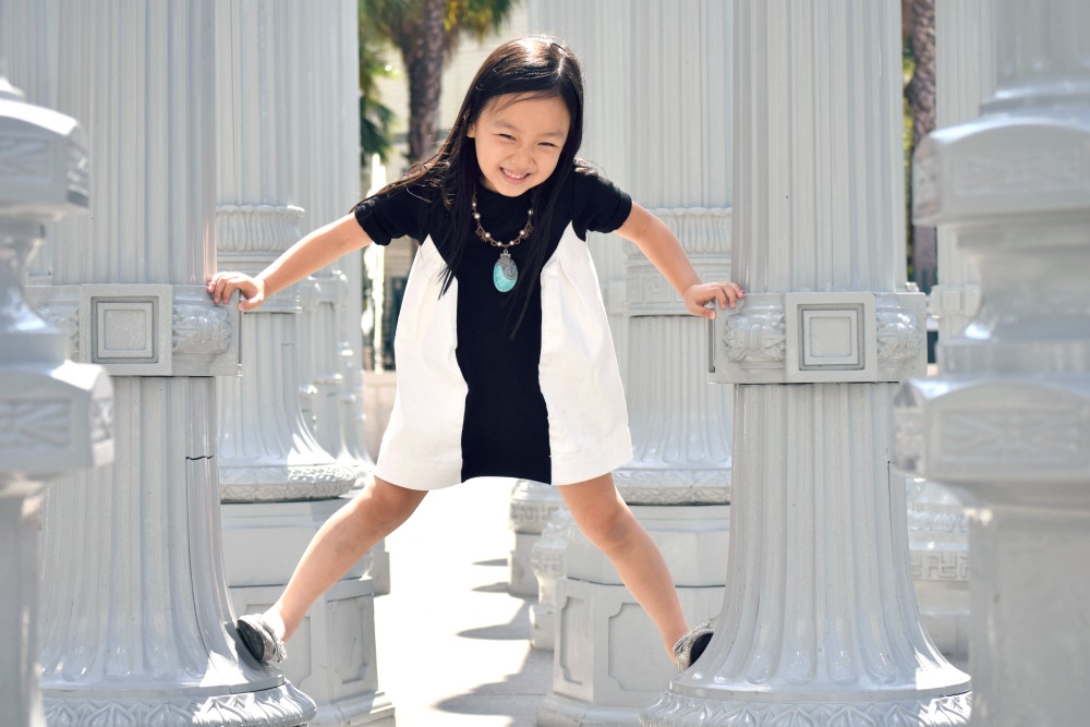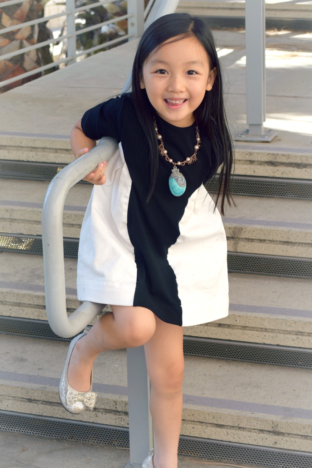 You can never go wrong with black and white no matter how old you are. And I like her necklace! Lovely girl!
