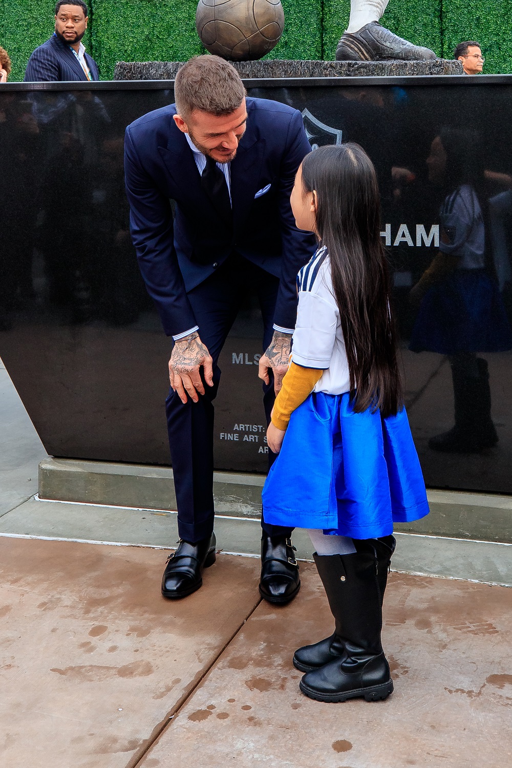 Meeting with David & Victoria Beckham at the Beckham Statue unveiling ceremony: