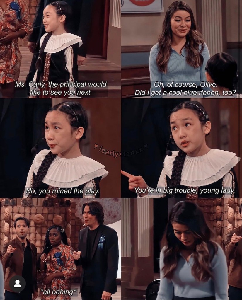 August 4, 2021February 17, 2022Malea Emma iCarly S1 Ep8 – iLove Gwen Released on Paramount Plus on July 22, 2021 With Miranda Cosgrove (Carly) With Carmela Zumbado (Gwen), Nathan Kress (Freddie) and Mary Scheer (Mrs. Benson) With Laci Mosley (Harper) With Jerry Trainor (Spencer) With Jerry Trainor and Jaidyn Triplett (Milicent) With the cast and crew on Pajamas day on set Share this: Share on X (Opens in new window) X Share on Facebook (Opens in new window) Facebook Like Loading... Related